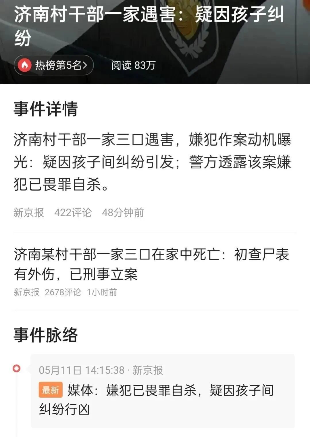 综合多个媒体和网友提供的信息,这个济南一家三口灭门案的起因,就是因为孩子的纠纷引起的。