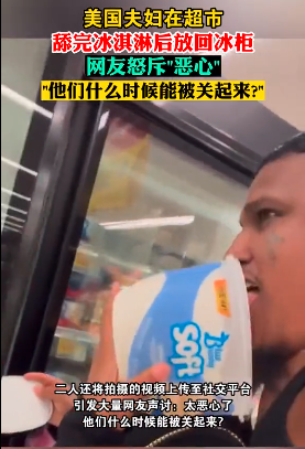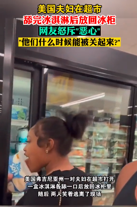 然后,妻子就将舔完的冰淇淋盖子盖好,又放回了冰柜原来的位置,然后两个人微笑着一路小跑离去,脸上写满了得意。