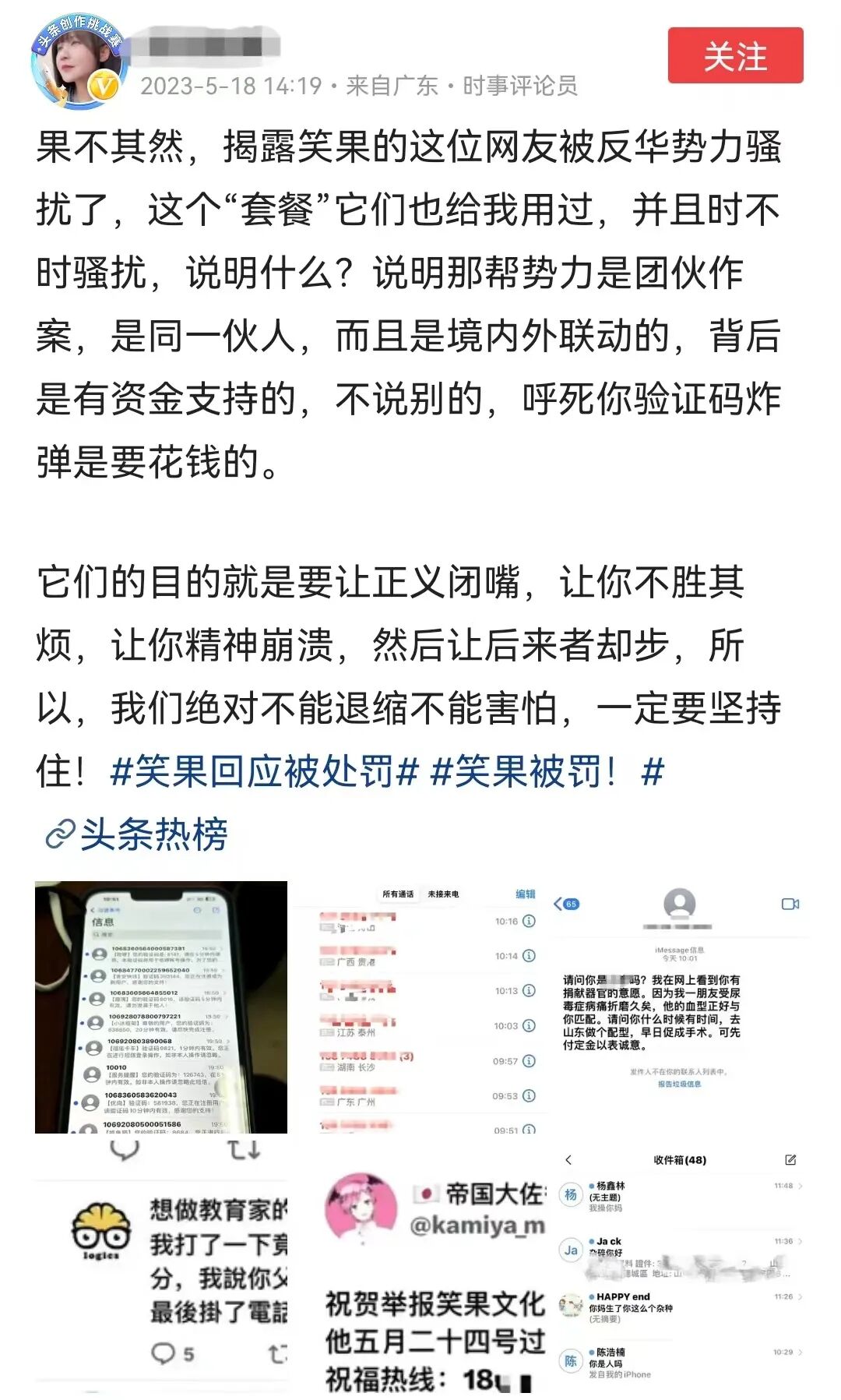 揭露笑果文化脱口秀演员涉嫌诋毁人民子弟兵的那位热心网友,被一波隐藏在暗处的恶势力份子骚扰了!