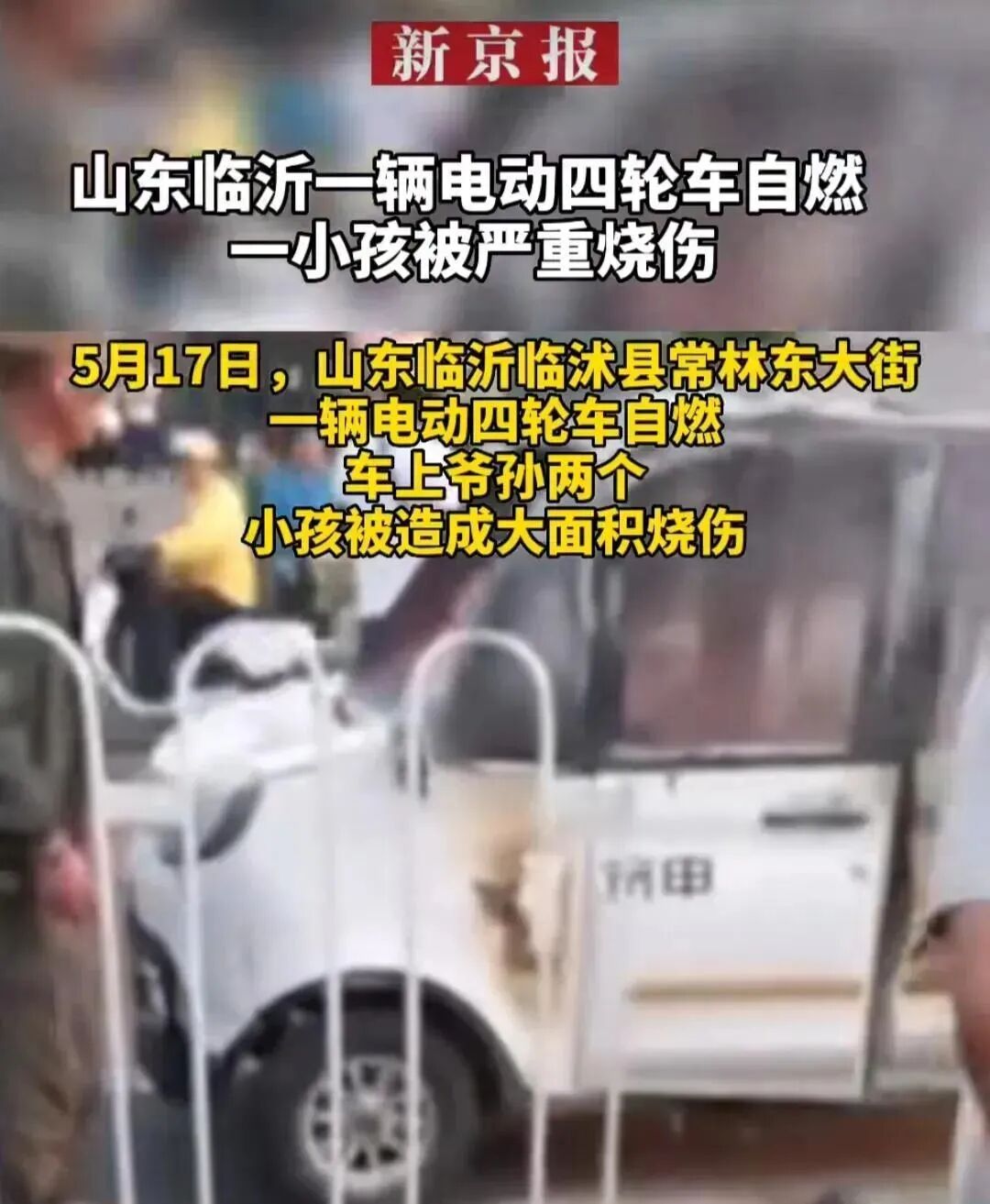 新京报的报道。在5月17日的下午6点,山东省临沂市发生一起老年车自然事故,车内一名7岁的女孩由于没有被及时发现,被大火夺去了弱小的生命。