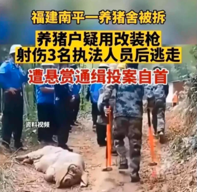 看到有人受伤后,猪场老板慌了神,他本没有伤人的意图,只不过被眼前这批执法人员给逼急了,不论怎么交涉都不理会,这才拿枪开始扫射,直到有人受伤后,他也趁乱跑了出去。