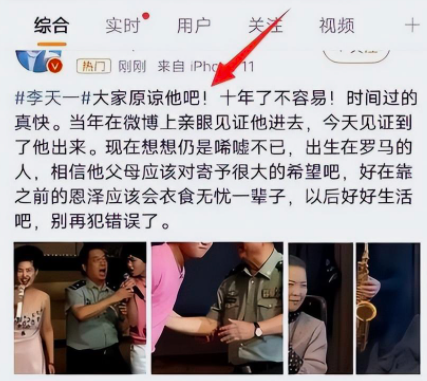 “大家原谅他吧!十年了不容易!时间过的真快。当年在微博上亲眼见证他进去,今天见证到了他出来。现在想想仍是唏嘘不已,出生在罗马的人,相信他父母应该对寄予很大的希望吧,好在靠之前的恩泽应该会衣食无忧一辈子,以后好好生活,别再犯错误了!”