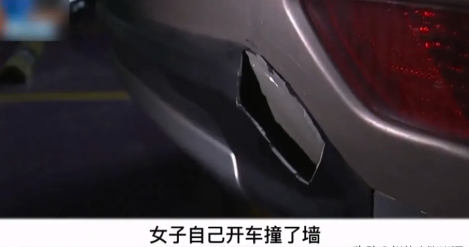 等到她停车下去检查的时候,发现爱车已经撞上了后墙,保险杠已经被撞坏了。