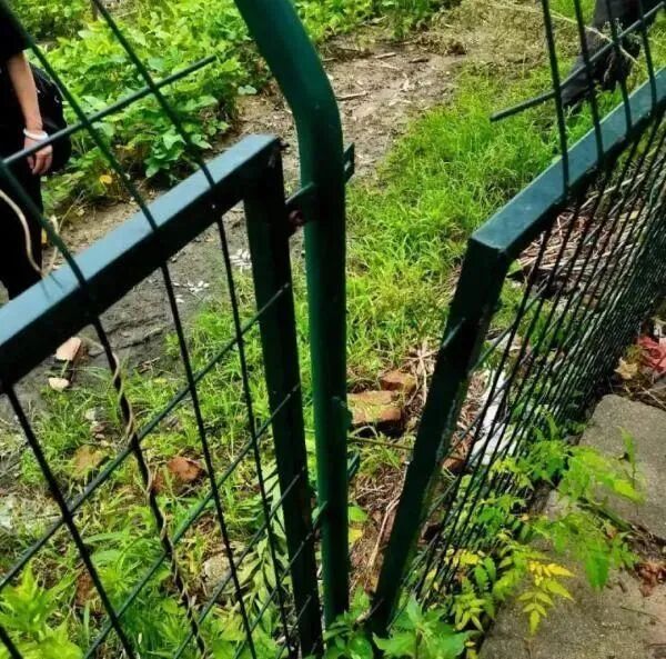 从老人家属提供的照片来看,该破损缺口较小,需通过大力拉拽等破坏方式扩大后才能容成人通过,一般人看见有围栏围着也不会选择从此通行。