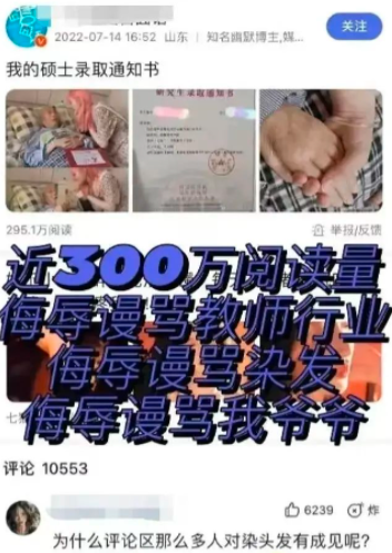 咱们自己的同胞,自己的家人,只不过因为染了个头发结果骂声一片。