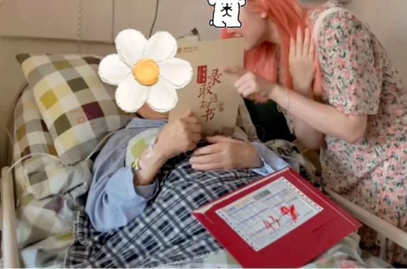 很开心的来到医院看望生病住院的爷爷,并将这个好消息告诉了爷爷,分享喜悦之情的同时,也希望借助这份喜气能够活跃爷爷的心情,早日康复。