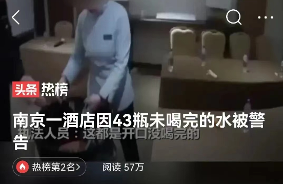 假如说,酒店这边主动把那些还没打开盖子的水给倒了,这属于浪费,该警告警告,该罚款罚款。