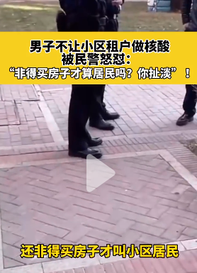 这个男子既不是医护人员,也不是社区管理,仅仅是小区一个普通住户,跟那些租户也没有什么仇恨,但是他不让别人做核酸的原因十分搞笑:只是租住,没有买房,不算小区居民,所以不能去做核酸。