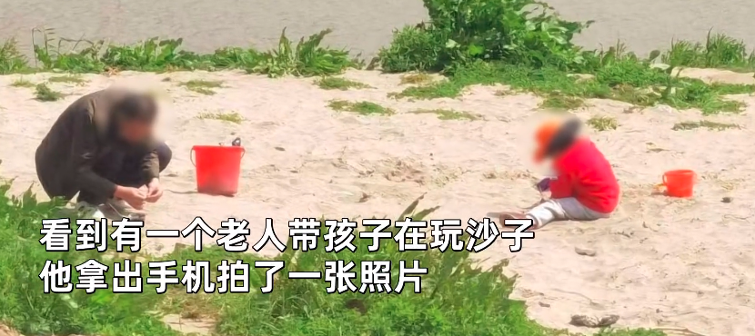 不远处的沙滩上,一个老人带着孙女正在玩着沙子,呙先生觉得这个画面特别的幸福温馨,就拿着手机拍下来那对爷孙玩耍的照片,想记录下这一刻美好的瞬间。