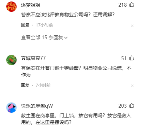 尽管如此,那家物业公司以及保安的做法依旧难消网友的心头怒火,痛斥物业公司招人也不招一个有文化的,小学生都知道砸缸救人的故事,作为保安却能无视,不是弱智就是脑残。