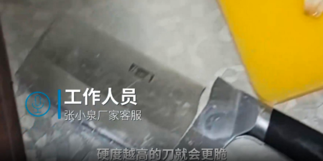 客服人员还指出:“全钢的硬,但越坚硬的物品,韧性却不高。”之前顾客提供的断刀问题,都是因为消费者忽略了这个材质问题,觉得越硬的东西肯定越适合砍骨头,于是出现了断裂的情况。