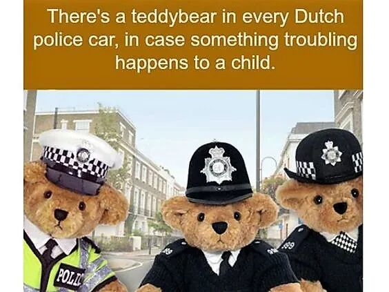 荷兰的每辆警车都至少装备有两只泰迪熊,这是荷兰警方的一项强制规定。