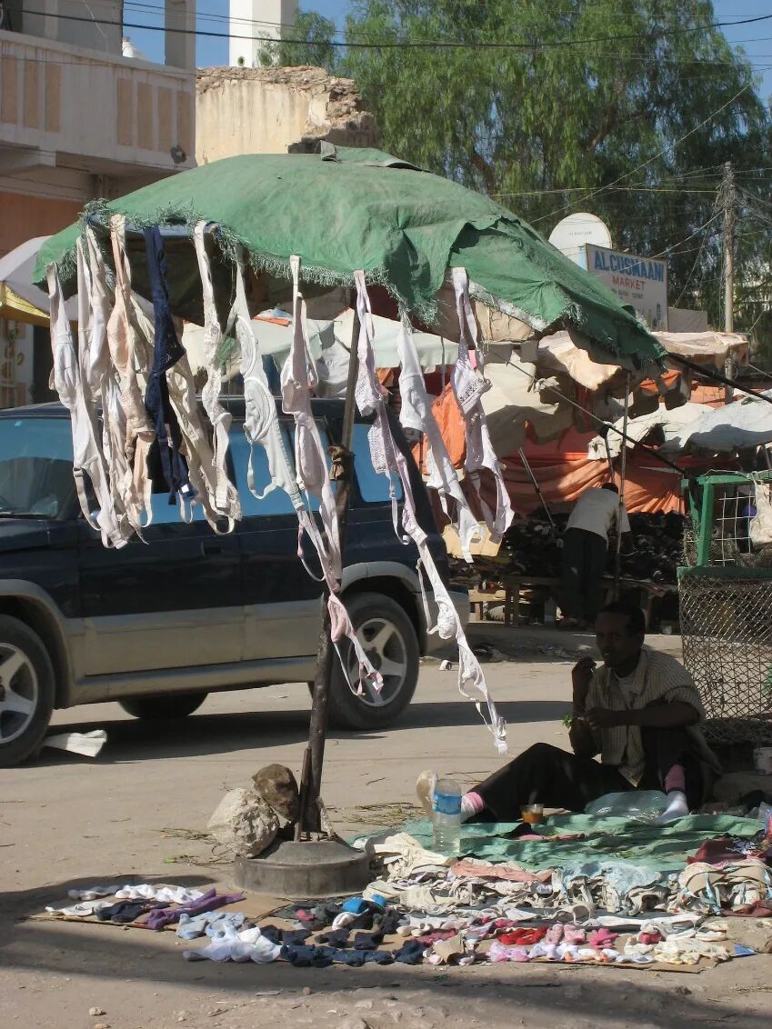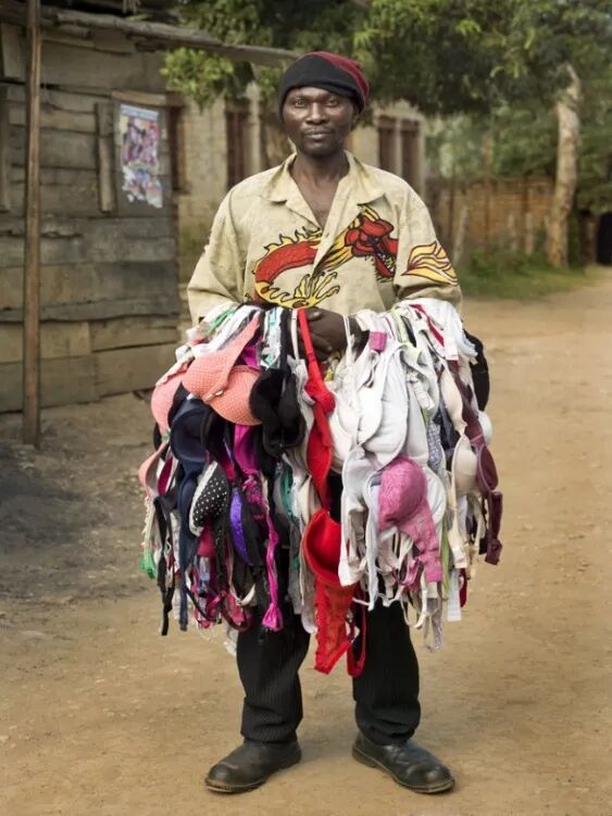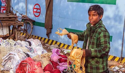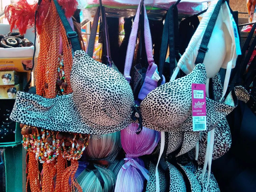 “我父亲二十五年前就在这条街上卖胸罩了。现在他把这个推车传给了我。”集市上一位卖货小孩说。
