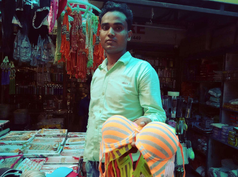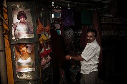 在印度,除了大城市里有我们所熟知的那种独立文胸店,一般乡镇的商业生态里文胸都是散装销售。