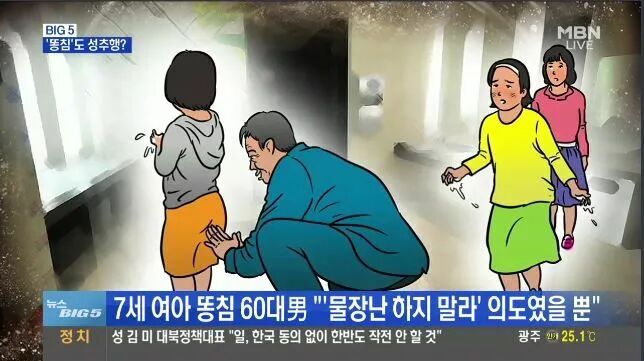 2015年十月,首尔一60男子经过商场女厕时发现一7岁女童正背对其洗手遂心生歹意。上前数次使用千年杀直至被害人倒地。