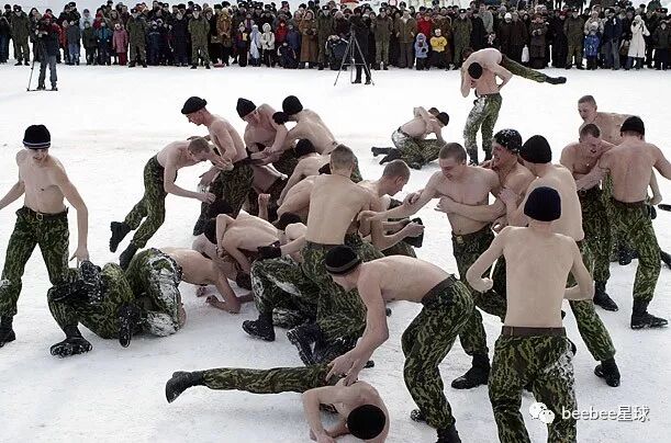 这种被称为“俄罗斯拳斗”的群殴格斗形式自古以来就存在。两排体形魁梧的半裸男子之间的对峙,体现了俄罗斯男性的基本功——无畏、勇敢和同志之情。