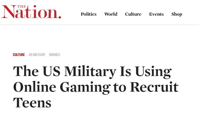《国家报》(The Nation)一篇文章就曾指出,美军把眼下备受年轻人关注的电竞和直播当做宣招工具。所以他们所做的一切自然会遭到网民的抵制。