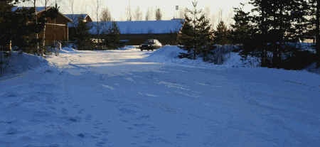 即便是柏油路,也总是覆盖着积雪。