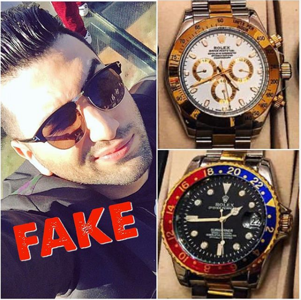 大约在三年前,演出中他佩戴了一块劳力士Day Date II,立马被指认是假的。