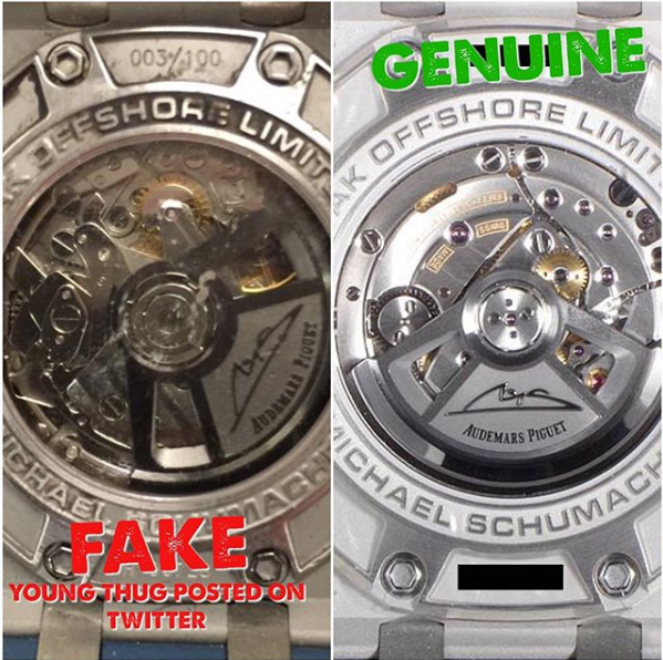 多张高清照片还是暴露了他的秘密,甚至不用花一丝力气:“他的山寨版爱彼坏了,电池没电了。”