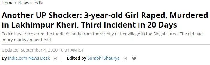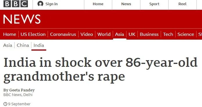 今年九月,德里一86岁送牛奶老妪上门送货时被其二十来岁的客户强*。
