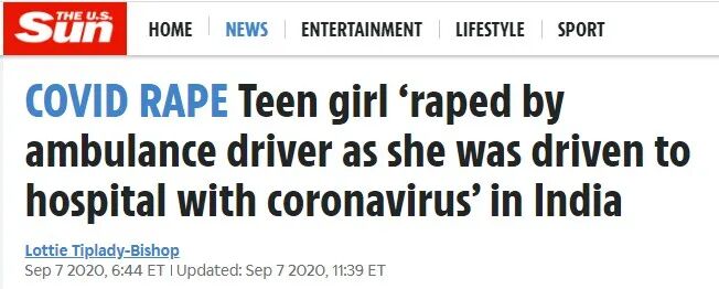 同一时间,喀拉拉邦一新冠患者竟在送医途中被救护车司机强*。