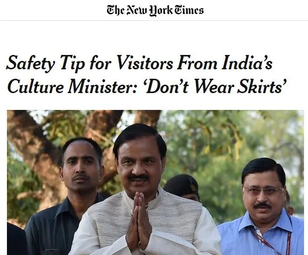 印度文化部部长2016年也在媒体上公开声称希望来到印度的女性游客不要穿裙子。