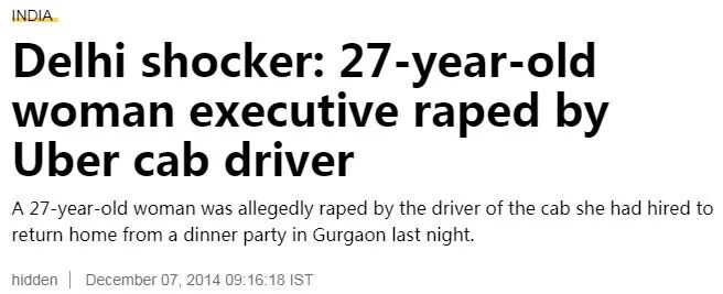 2014年首都新德里,一金融公司女高管夜晚回家在网约车上遭遇强*并受到殴打。