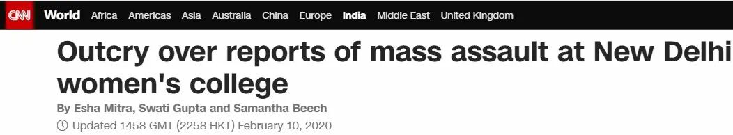 今年上半年,数千男子在印度新德里一女子大学校庆典礼时翻墙闯入校内,对在校所有女生进行无差别性骚扰。