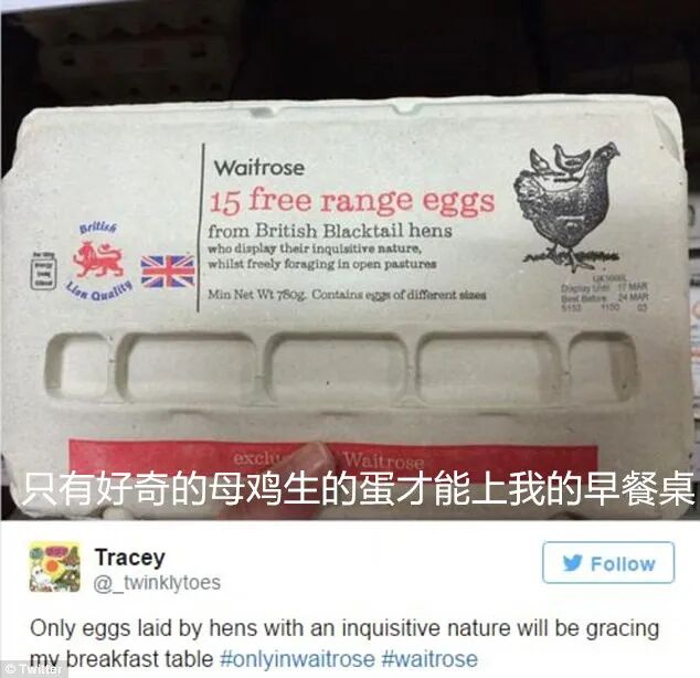 店内商品奢侈又别致。除了秋叶之外,推特#only in waitrose展示的各种奇珍异货让平民百姓开了眼界。