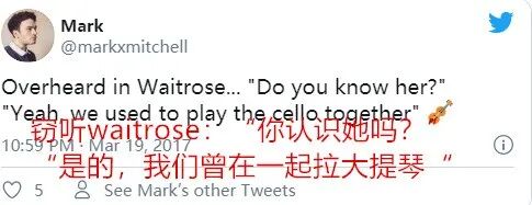 一连串壕言壮语引发百姓好奇。2014年,网友在脸书建立了“窃听waitrose”账户,人们把在waitrose旁听到的最具贵族腔调的对话发到这里,60万用户洗耳恭听大开眼界。
