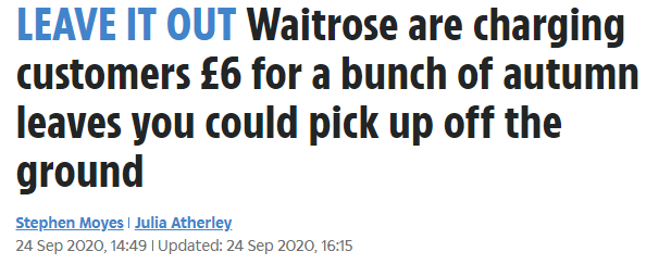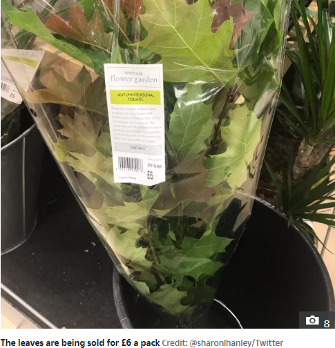 近日,英国豪华超市Waitrose引发推特热议,只因店内推出了全新商品“秋叶”,并以6英镑(约52元人民币)一束的价格售卖。