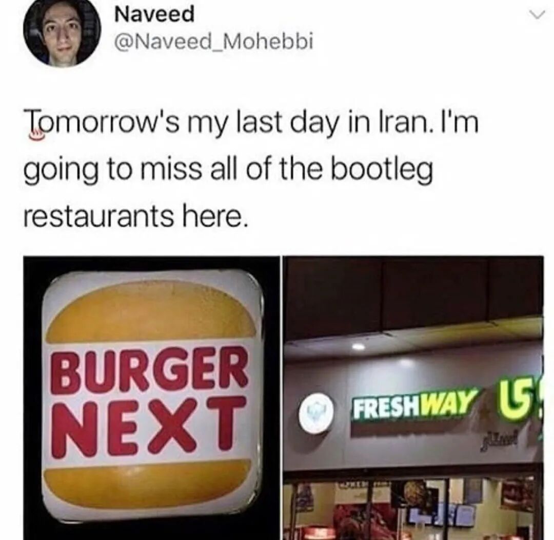 模仿西方连锁店以吸引想尝试这些品牌的伊朗人,但和正品毫无关系和牵连,任何人都没有理由指责其腐朽和文化受侵。