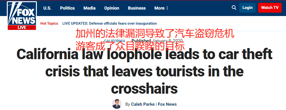 加州是全美汽车破窗盗窃之都,据洛杉矶警局称,在2018年加州发生了24.3万起汽车盗窃案。