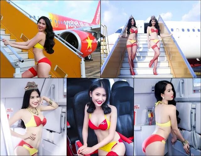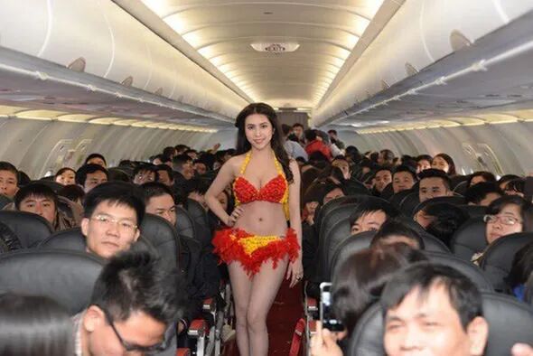 在2018年,越捷航空为归国的U23足球队,精心准备了比基尼表演。