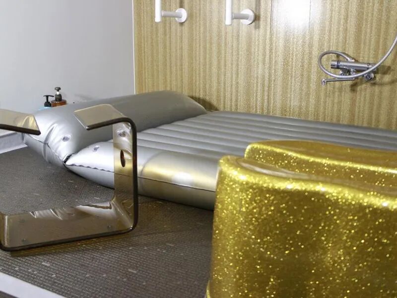 参观疗养院环境是入住前的常规流程,浴室里摆着的金色凹形凳总能让他们眼前一亮。