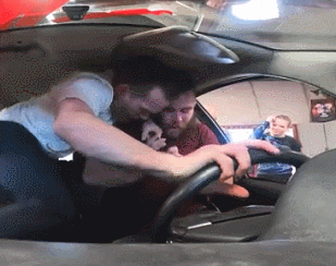 规则非常简单,比赛双方坐在车内主副驾位置,等裁判一声令下,对手立马像为回家还是去洗浴中心的夫妻那样掐架。