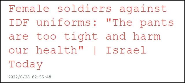 女兵反对以色列国防军制服:“裤子太紧,危害健康”