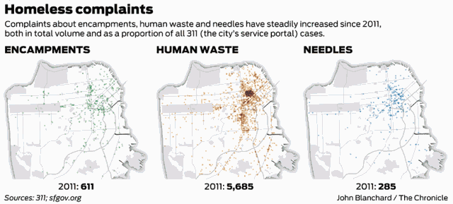 随着旧金山的大便危机达到沸点,人们甚至创建了交互式的大便热点地图。