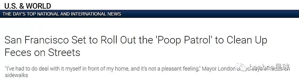 旧金山准备推出“大便巡逻队”来清理街上的大便 “我必须在自己家门前处理它,这并不是一种愉快的感觉。”市长朗顿·布里德对人行道上的大便评论道。
