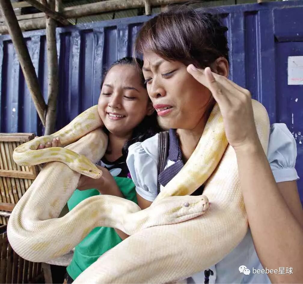 “冰冷的蛇身是菲律宾炎热气候的自然空调,贴着它会让你产生一种舒爽的感觉。”