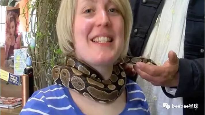这次节假日,在动物园游玩的她,不顾女儿的极力反对,表示一定要尝试一番蛇疗。