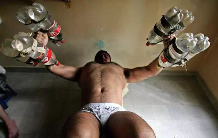 囚犯一般会选择把书本、锅碗瓢盆、还有马桶盖盖等裹到床单里做负重练习。