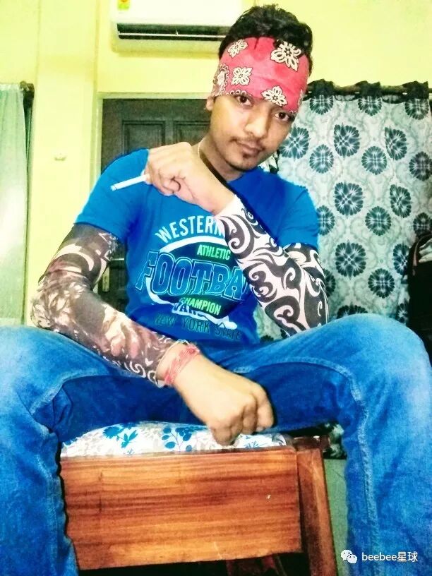 那小哥是为了骑行时防晒而戴的纹身袖套。