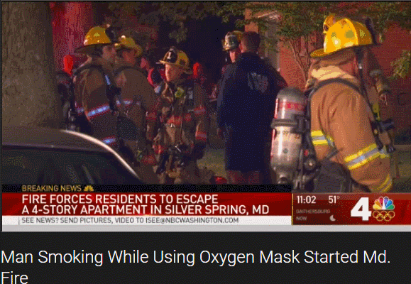 一名男子在使用氧气面罩时吸烟引发了火灾