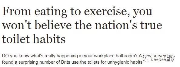 而关于英国人喜欢在厕所里做的事情中,《星期日快报》给出了解答。排名首位的是“面对面聊天”高达21%,“吃东西”紧随其后占12%的比例。