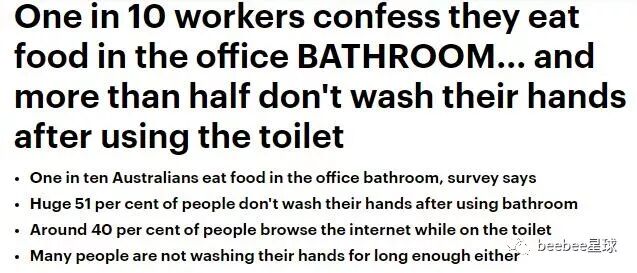《每日邮报》曾在一则调研中显示,十分之一的澳洲员工表示自己曾在厕所进食。