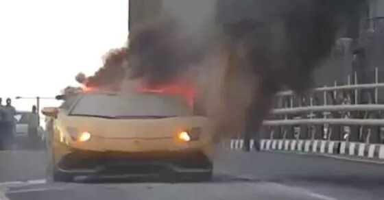 他开着的125,000英镑的兰博基尼在高速公路上,一小时后起火了。