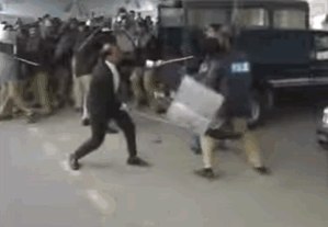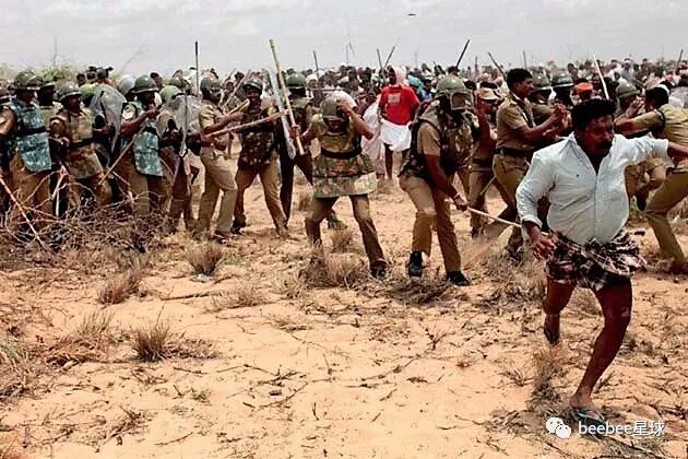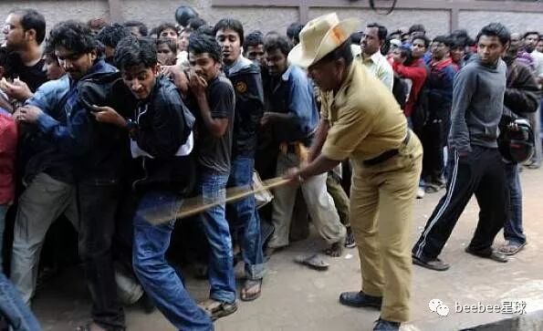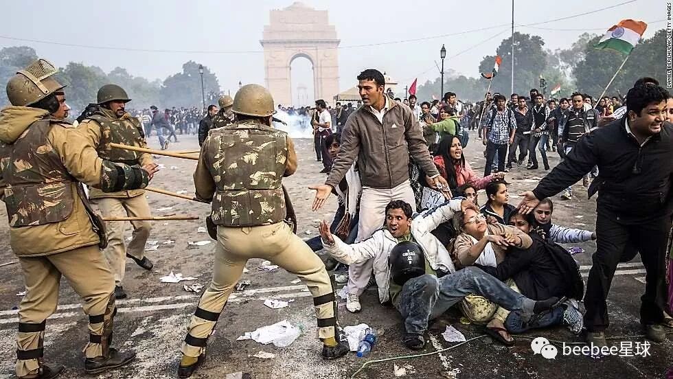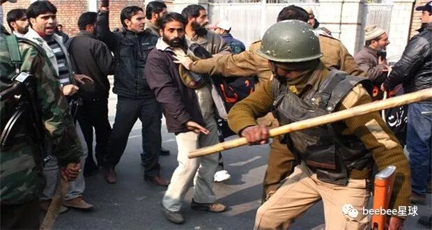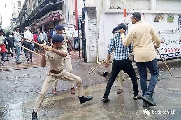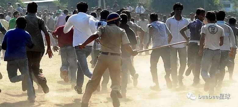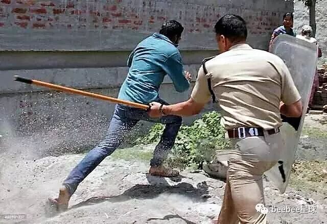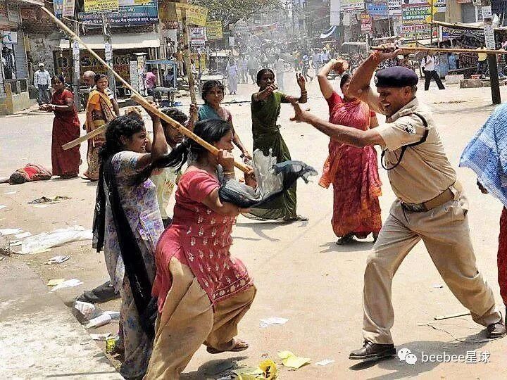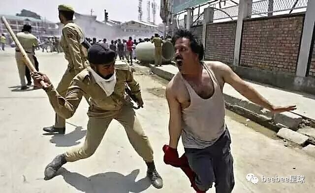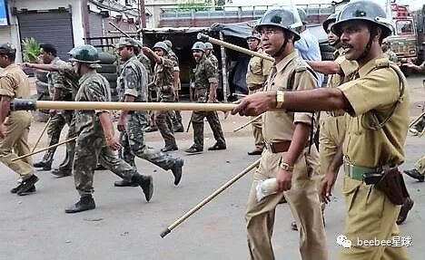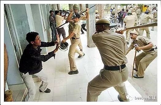 印度警察使用竹棍最常见的情形是在以一敌多的时候,他们往往不分青红皂白,上去对着人群就是一通闷棍。
