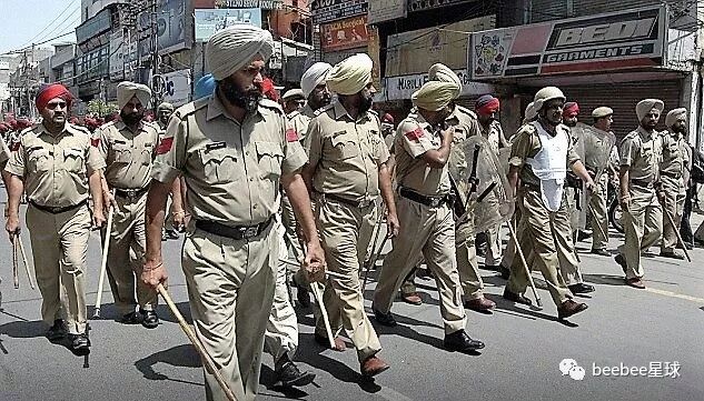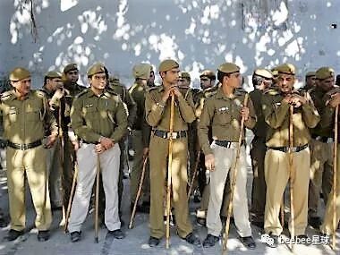 印度警察经常需要在45度的强烈阳光下站立数小时,因此携带竹棍能够帮助他们保持站立。